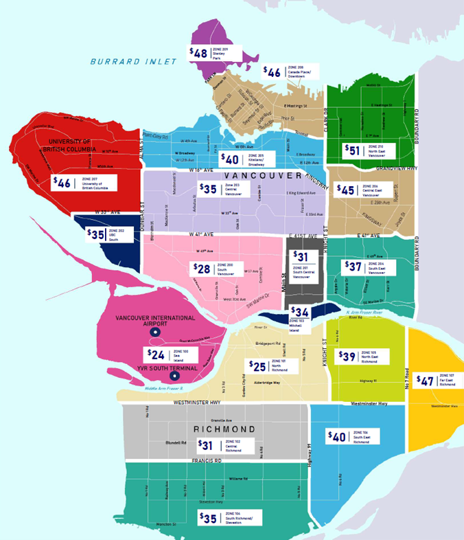 | 204 - South East Vancouver | $31.35 | $33.00 | $37.00 |